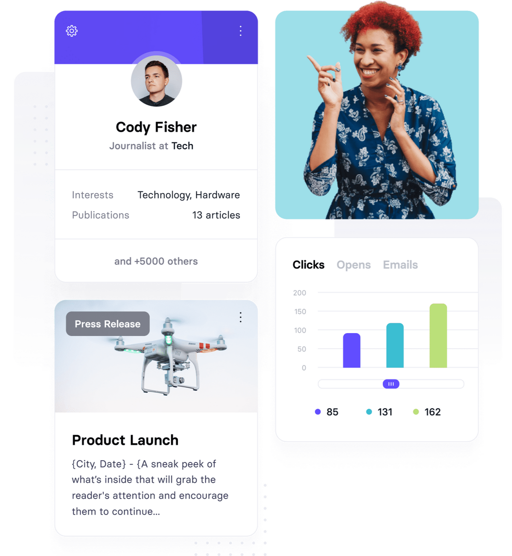 Save hours on everyday PR tasksCollaborate with your whole PR teamDiscover new media opportunitiesStand out in journalists' inboxesFoster long-term media relationshipsGet support whenever neededAnalyze how people react to your contentIncrease brand awareness